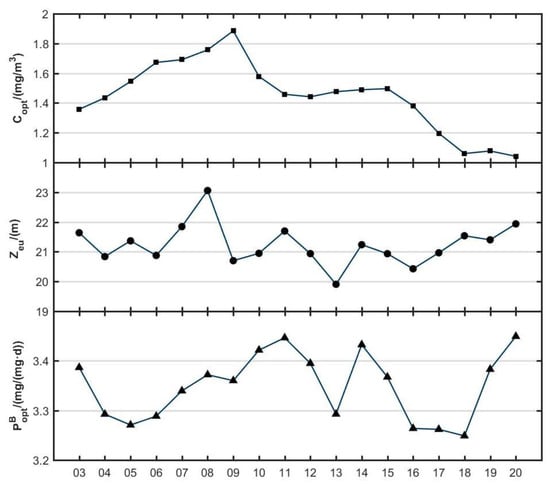 However, may not be appropriate for shelf seas. Yoon and Yoo et al. [35,36] found that the parameterization scheme of overestimated the maximum photosynthetic rate in the Yellow Sea and modified it by a quadratic function of temperature, i.e., Expression (4), based on in situ observation data.