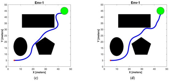 Results of path under scenario 1: (a) RRT*; (b) Informed-RRT*; (c) spRRT; (d) spRRT-Informed.