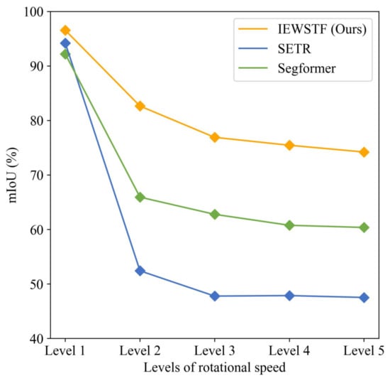 Comparison of mIoU for all methods at different levels of rotational speed.