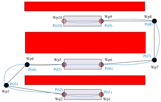 Let us consider that the UAV needs to pass through the waypoints from the start position to target position. Enforcing waypoint constraints involves setting equality constraints on relevant control points to ensure their compliance, expressed as follows: