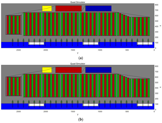 Let us introduce the port environment considered above as a 3D simulation map. The length, width, and height of the map boundary are 820 m, 2820 m, and 120 m, respectively. The yard is generally divided into four subareas: the container area, dangerous container area, empty container yard area, and port inspection area, as shown in Figure 2.