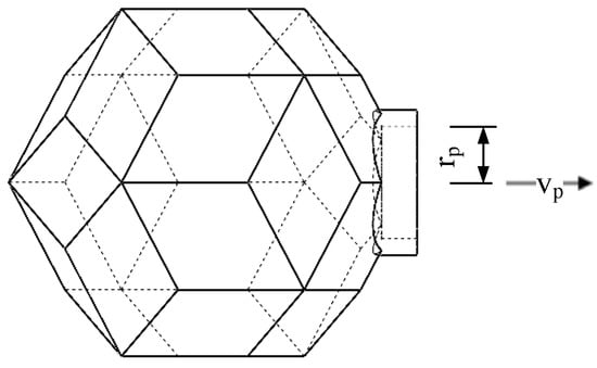 The initial radius of the rhombic triacontahedral origami flexiball structure and the time required to contract are set to constant values. The origami flexiball radius contraction velocity is set to a sine function, that is, , then the nozzle ejected fluid velocity can be calculated by:
