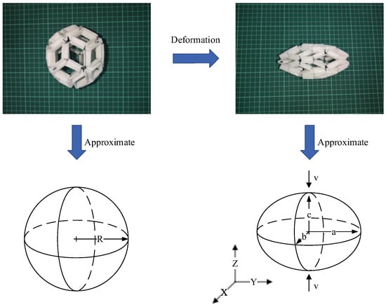 The formula has similarity with the volume calculation formula of rhombic triacontahedral origami structure, so the rhombic triacontahedral origami structure can be approximated as a sphere in its released state (Figure 9).