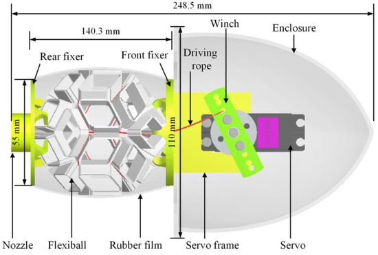 Considering the practical application and production feasibility of bionic jellyfish, take preliminarily, then . Further, let , and we get , , . The head of the bionic jellyfish robot is designed to be streamlined to reduce the resistance during swimming, and it also serves as a closed box to hold the motor.