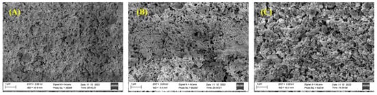 SEM images of HSFCM after treatment at 20 °C (A), 100 °C (B) and 400 °C (C).