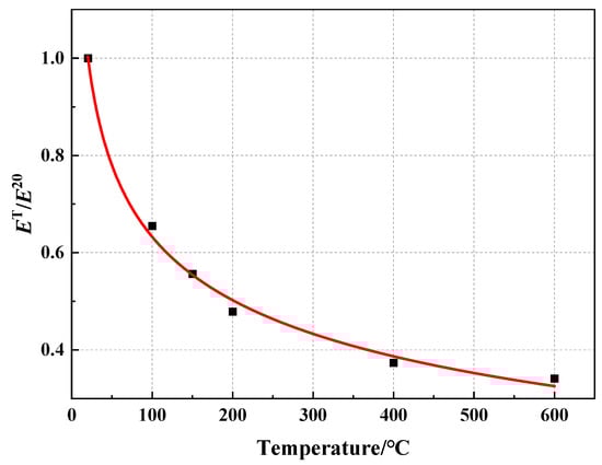 The elastic modulus was calculated; the ratio of the elastic modulus after high temperature treatment and the elastic modulus at room temperature changed with temperature (Figure 11).
