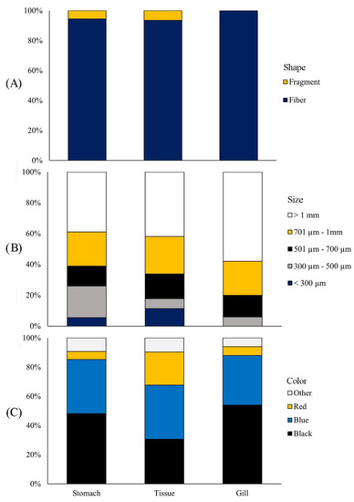 - Okamoto, K.; Nomura, M.; Horie, Y.; Okamura, H. Color Preferences and Gastrointestinal-Tract Retention Times of Mi-croplastics by Freshwater and Marine Fishes. Environ. Pollut. 2022, 304, 119253. [Google Scholar] [CrossRef] [PubMed]