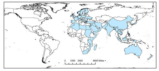 The MSR is an open cooperation initiative, with different definitions of its spatial scope. On the whole, its key direction is from China’s coastal ports to the South Pacific and Indian Ocean through the South China Sea. According to the key direction of the MSR, the research scope is defined as ports in countries and regions including East Asia, Southeast Asia, South Asia, West Asia, the east coast of Africa, Oceania, the Mediterranean, and Europe. The research scope is as shown in Figure 2.