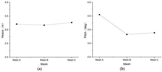Comparison of the results of three sets of meshes: (a) heave of the single floating body; (b) pitch of the single floating body.