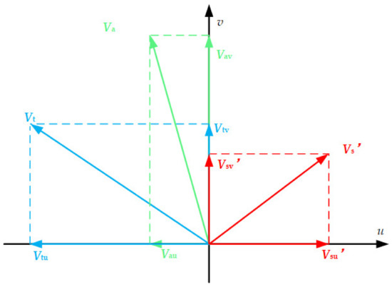 In the figure, VS’ is the wind caused by ship motion, Vt is the true wind, and Va is the relative wind. u and v are the longitude and latitude directions.