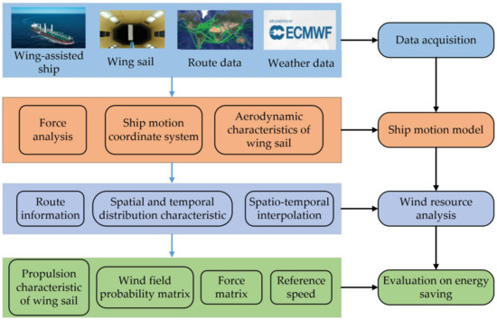 A wind resource acquisition method based on the longitude, latitude, and time of the route is proposed to convert the regional marine wind resources into wind resources on sailing routes according to marine wind field data. The level of available wind resources on a specific route of a sail-assisted ship is determined by combining wind resource analysis and the navigation condition, as well as the wing sail force.