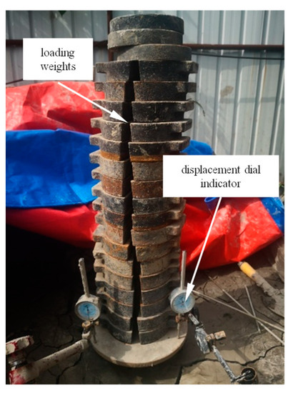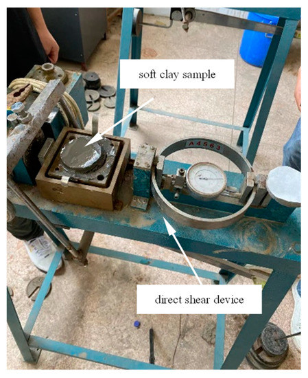As shown in Figure 4, the soil around the pile after the test was taken with a ring knife to carry out the direct shear test. The static load test of the pile after electro-osmosis was also performed to test the bearing capacity of the electro-osmosis-enhanced pile, as shown in Figure 5.