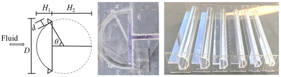 All oscillators were 0.9 m long and made of polymethyl methacrylate. Considering the boundary effect zone, two end plates are set at both ends of the oscillator, and the thickness of the end plate is designed as δ = 0.01 m. Model diameters are 0.06, 0.08, 0.10, 0.12, 0.14, and 0.16 m. As referred to in the flow regime classification by Zdravkovich et al. [], the test range is in the TrSL2, TrSL3, and TrBL0 regimes.