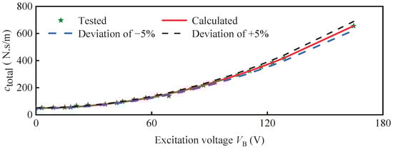 The calculated total damping ctotal-calculated is calculated by (Equation (10)).