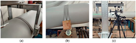A photograph of the inflated sample was presented in Figure 2b, which was in the form of a straight thin-walled beam. The nominal dimensions of the sample were a length of 4 m and a diameter of 400 mm. However, it would be noteworthy that the actual diameter of the sample underwent variations with changes in internal pressure across all cases. For instance, at an internal pressure of 10 kPa, the real diameter of the sample was measured to be 413.81 mm, while it was 415.75 mm at 20 kPa.