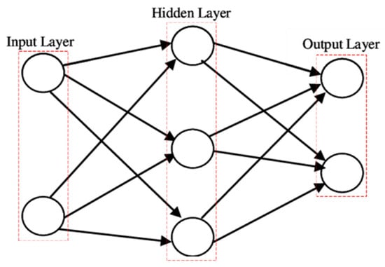 The BPNN shown in Figure 3 is a basic class of the artificial neural network (ANN) community. Three types of layers describe the state of data, and the nonlinear transformation between layers is processed with the activation function. The left and right layers store the input and output data. The hidden layer in the middle expresses the process of nonlinear transformation with the neural network activation function. The perception units of BPNN simulate the information transformation through brain neurons as follows: