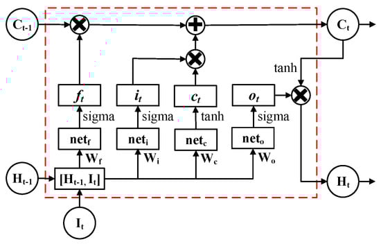 where the subscripts, represent the forget gate, input gate and output gate, respectively; is the sigmoid function and the activation function in different types of neural networks; and is the hyperbolic tangent function. The operator is defined as the multiple operations of matrices and vectors []. The information transforms not only through the layers but also through time. In BPNN, the error propagation through layers is the only factor considered. Meanwhile, in LSTM RNN, the error propagations through layers and time steps are considered simultaneously. The error propagation algorithm is called back propagation through time.