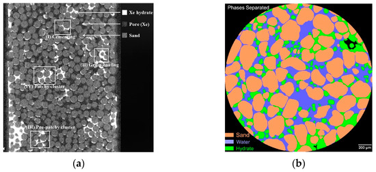 - Lei, L.; Seol, Y.; Jarvis, K. Pore-scale visualization of methane hydrate-bearing sediments with micro-CT. Geophys. Res. Lett. 2018, 45, 5417–5426. [Google Scholar] [CrossRef]