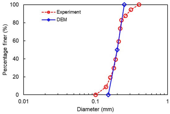 Particle size distribution of host sands in the DEM simulations and experiments [47].