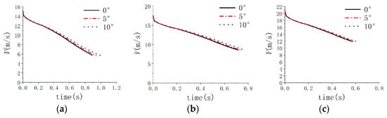 Images of axial velocity variation of vehicle under different initial angles. (a) Axial velocity of vehicle in case 1, 2, 3. (b) Axial velocity of vehicle in case 4, 5, 6. (c) Axial velocity of vehicle in case 7, 8, 9.