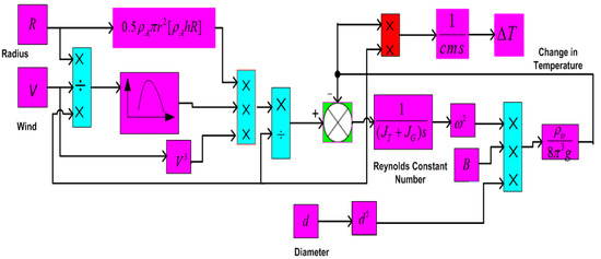 The wind heat generator increases the temperature of the fluid used for heat transfer by transforming mechanical energy into heat. Under lossless conditions, the energy given by the WT to the heat generator determines the increase in fluid temperature, which can be expressed as [39]: