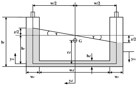 Figure 2 shows the structural parameters of the anti-rolling tank. According to Lloyd’s theory, the motion equation of the passive anti-rolling tank can be expressed as follows [21]: