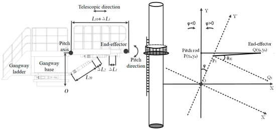 The length of the gangway telescopic rod is defined as , and can be expressed as follows: