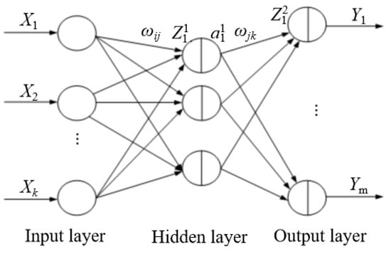 The wavelet neural network is a multilayer feedforward network composed of input, hidden, and output layers [24,25]. The structure is shown in Figure 9, where , ,…, are the input values; and respectively represent the weights from the input layer to the hidden layer, and from the hidden layer to the output layer; , ,…, are the output values; and are expansion factors of wavelet hidden layer and output layer basis function, respectively; and and represent the prediction inputs of the hidden layer and the output layer, respectively.