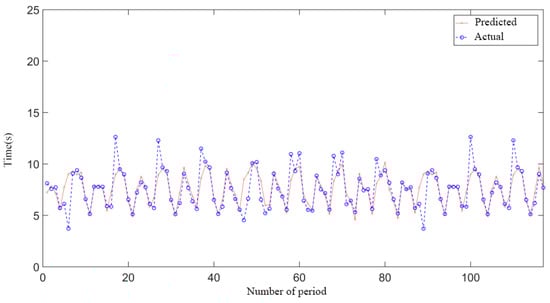 The comparison between the predicted rolling period of the wavelet neural network and the actual rolling period of the ship is shown in Figure 10. It can be seen from Figure 10 that the rolling period prediction algorithm based on WNN can predict the ship’s rolling period relatively accurately.