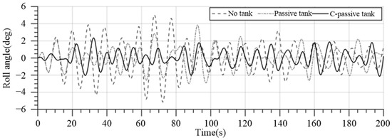 Roll angle of no tank, passive anti-rolling tank, and controllable passive anti-rolling tank.