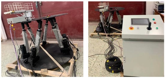 The hardware-in-the-loop (HIL) simulation is used to verify the results. Six 750 W AC servo motors are used to drive the 6-DOF motion platform to simulate the hull movement. The picture of the 6-DOF motion platform is shown in Figure 15.