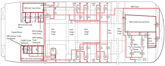 In Table 1 and Table 2, all HFO tanks are storage tanks, with the exception of the port and starboard HFO service tanks, and port and starboard HFO settling tanks. Service tanks feed purified fuel from the settling tanks to the main propulsion units on the port and starboard sides, and to auxiliary generators for electrical power production.