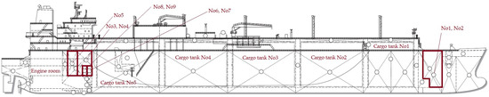 The procedures of distributing old fuel and subsequently loading new fuel are affected by the necessity of ballasting or deballasting operations. Depending on the location of bunkered fuel, it is required to carry out the ballasting or deballasting operation when the fuel is taken or laden from one side of the vessel, as in HFO Aft tanks port and starboard and low-sulphur fuel oil (LSHFO) tank starboard. The same ballasting or deballasting operation occurs when the bunker is filled or taken from the forward port and starboard tanks to keep the ship’s trim and list in the neutral position. As this LNG carrier calls various ports in the world, some discharging ports have no required seawater depth for this type of LNG carrier and, in that case, the quantity of fuel must satisfy restrictions concerning under keel clearance, which is often different from the local port authorities’, and ship owners’, SMS policies. Therefore, the maximum loading capacity may be lower than the one shown in Table 2.