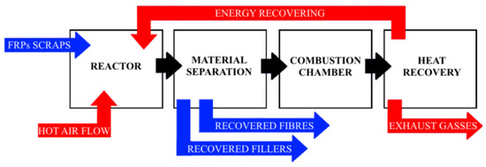 In thermal recycling methods, GFs and CFs are released from the matrix using high temperatures that deteriorate the polymeric matrix. These recycling methods are usually classified in pyrolysis and fluidised beds.