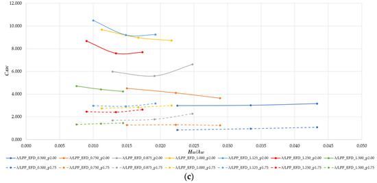 EFD and CFD Results for: (a) 0.131; (b) 0.174; (c) 0.218.