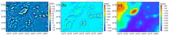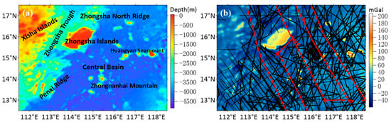 The authors are thankful to the National Geophysical Data Center (https://www.ngdc.noaa.gov/mgg/global/global.html, accessed on 2 September 2022) for providing the depth data of the shipborne measurements and the ETOPO1 bathymetric model, and are thankful to the Scripps Institution of Oceanography website (https://topex.ucsd.edu/marine_grav/mar_grav.html, accessed on 2 September 2022) for providing the V32.1 gravity anomaly and SIO 24.1 seafloor topography. We are grateful the Technical University of Denmark (https://www.space.dtu.dk/english, accessed on 2 September 2022) for the DTU10 bathymetric model. We also hank anonymous reviewers for their suggestions.