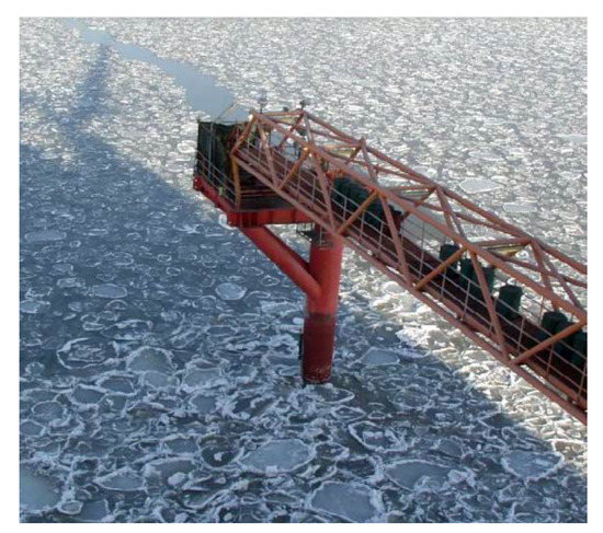 - Yue, Q.; Bi, X.; Sun, B.; Zhang, T.; Chen, X. Full scale force measurement on JZ20-2 platform. In Proceedings of the Proc. IAHR Ice Symp.(IAHR’96), Beijing, China, 27–30 August 1996; 1996; pp. 282–289. [Google Scholar]