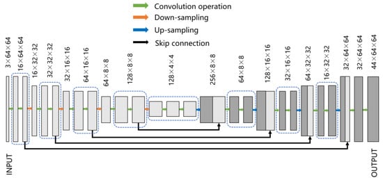 The neural network parameters were set as follows: The convolution kernel size is 3 × 3, the training epoch was set to 1000, the initial learning rate was 0.001, the batch size value was 12, and the convolutional layers were 26 in total, including 4 down-samples and 4 up-samples.