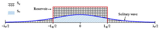 The first condition is that the mass of the initial water reservoir, , and the solitary wave, , should be the same, i.e., . As the density of water, , and the width of the tank, W (equal to the unit length in two dimensions), is constant in this study, and , , where is the cross-section area of the reservoir.