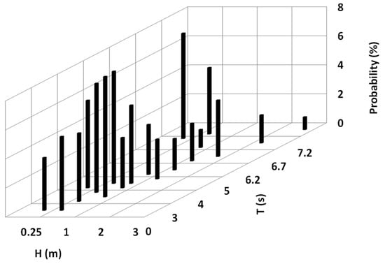 Therefore, to reduce the numerical overburden in the time domain, a lumped method, by lumping the oyster bags and the longline buoys, is implemented. The lumped model is validated with a complete partial farm, and it is then extended to model the whole farm in order to calculate the loads on the farm lines and the anchor lines. The site has very strong current with a high tidal level variation. Typhoons occasionally pass through the site during the summer and fall seasons. Thus, the Design Load Cases (DLCs) are constructed accordingly to consider the wave dominant and current dominant cases [30] separately, along with the tide level variations. The water depth of the site is about 11.8 m. The typical submergence of the longline is about 5 to 10 m to reduce the wave effect to the culturing species, but, for the present analysis, a submergence of 1.5 m is considered, based on the factors of the shallow depth with a high variation of tide and typhoon wave heights, in order to avoid a potential clash of the oyster bags with the seafloor.