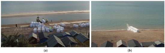 In 2007, a field experiment based on the impoundment technique was performed at the study site, deploying a temporary impermeable groin, 46 m long (originally 19 m wet and 27 m dry), which acted as a barrier to the longshore sediment transport between 1 October 2007 and 15 November 2007 (Figure 3) [18,19,20].