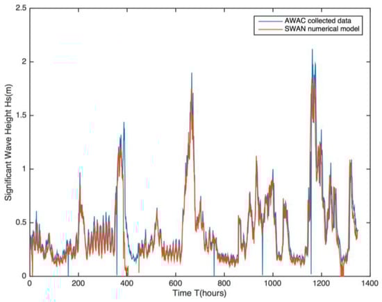 Figure 11 shows the comparison between the AWAC time series and numerical results of the significant wave height.