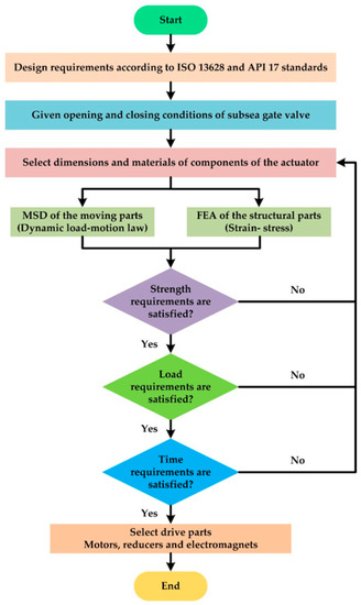 The design process is shown in Figure 11. The design process of the all-electric subsea gate valve actuator follows the process of design requirement determination, dimensional survey, model development, and mechanical analysis [44,45].