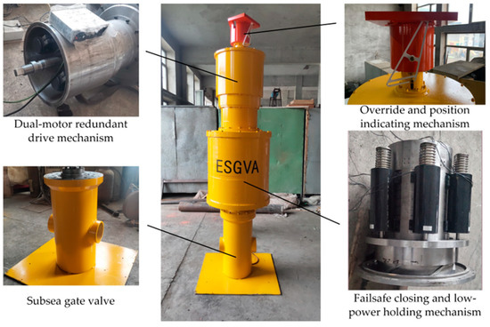 Based on the requirements of functional design, the prototype was developed, as shown in Figure 12. The prototype was a highly integrated piece of electromechanical equipment, consisting of the failsafe closing and low-power holding mechanism, override and position-indicating mechanism, pressure compensator, dual-motor redundant drive mechanism, and subsea gate valve.