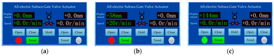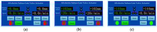 The monitoring interface of the single-motor driving test: (a) the valve is closed, (b) the valve is opening, (c) the valve is open.