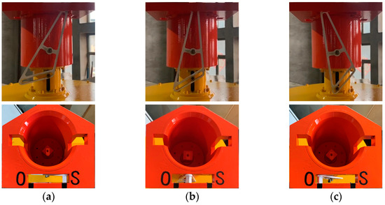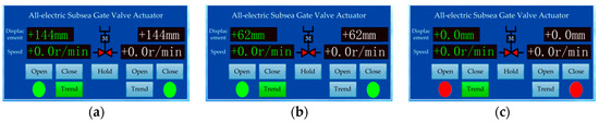 Subsea gate valve position indication test results: (a) the valve is closed, (b) the valve is opening, (c) the valve is open.