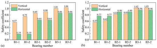 The vertical and horizontal safety coefficients of the bearing: (a) 4.90 h; (b) 5.51h.