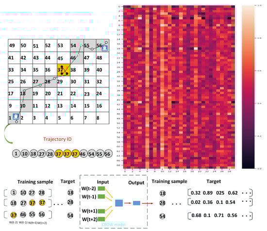 Then, we use the CBOW algorithm to vectorize the trajectory sequence and add it to the subsequent training [44], and show the relationship between the trajectory points in the form of a heat map.