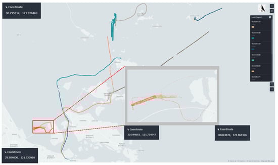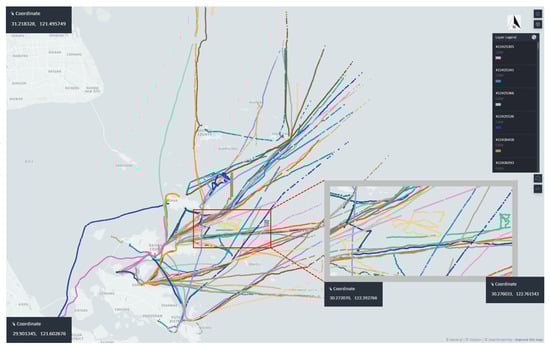 Relatively stable: Gillnet fishing vessels [28] usually fish within a certain area, with a cruising speed of 0–2 knots during operation. The navigation trajectory is relatively stable, unlike trawl or seine fishing vessels, which frequently change direction and speed.