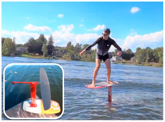 - Anfuso, E. Study of the Longitudinal Behavior of a Hydrofoill Surfboard. Master’s Thesis, Politecnico di Milano, Milan, Italy, 2018; 115p. [Google Scholar]